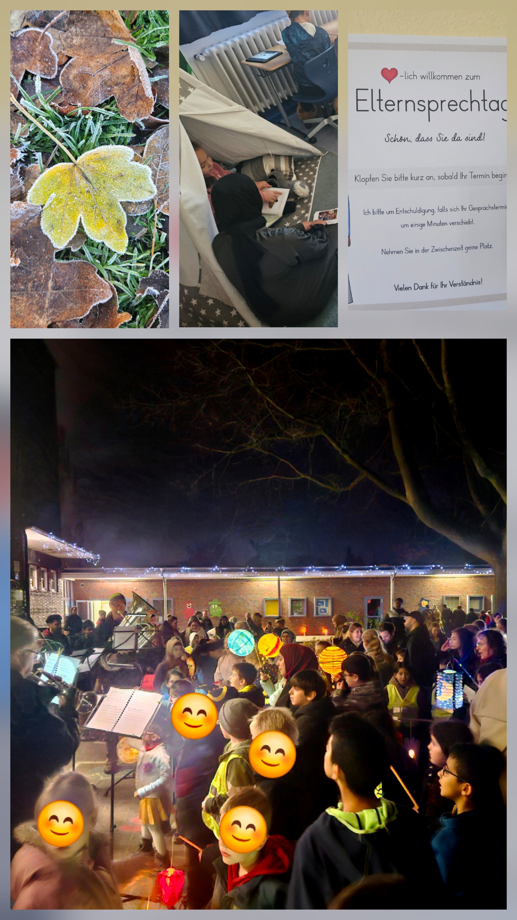die Herbstferien sind vorbei, gemeinsam starten wir in die letzten Monate des Jahres 2025. Der November war sehr aufregend. Die dritten und vierten Klassen wurden von der HSG Delmenhorst zum Handballtag in die neue Stadionhalle eingeladen. Unser Laternenfest war wunderschön- eure Laternen leuchteten bunt am dunklen Abend und gemeinsam mit dem Posaunenchor der ev.-luth. Kirche sangen wir die eingeübten Lieder. Der Förderverein verkaufte Salat und Würstchen, der warme Punsch war ebenfalls sehr lecker! Am 21.11.2025 stand dann der Vorlesetag an- die Klassen 3a und 3b stellten uns ihr aktuelles Buch "Encanto" vor und lasen daraus. Am Ende gab es ein tolles Quiz. Es ist so schön zu sehen, wie viele große und kleine Menschen an unserer Schule gemeinsam so tolle Sachen auf die Beine stellen. Zum Elternsprechtag durften wir viele Eltern begrüßen und die Lehrerinnen und Lehrer haben gute Gespräche geführt.